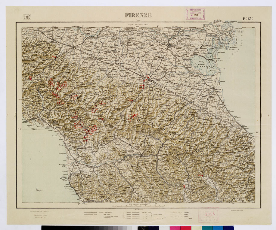 (N:1049) CARTA D'ITALIA CON LE INDICAZIONI DELLE CENTRALI PER LA PRODUZIONE DI ENERGIA ELETTRICA, ESISTENTI ED IN COSTRUZIONE A TUTTO LANNO 1920 - Foglio 13 FIRENZE (B0009105) Carte e stampe antiche: riproduzione digitale a 150 DPI