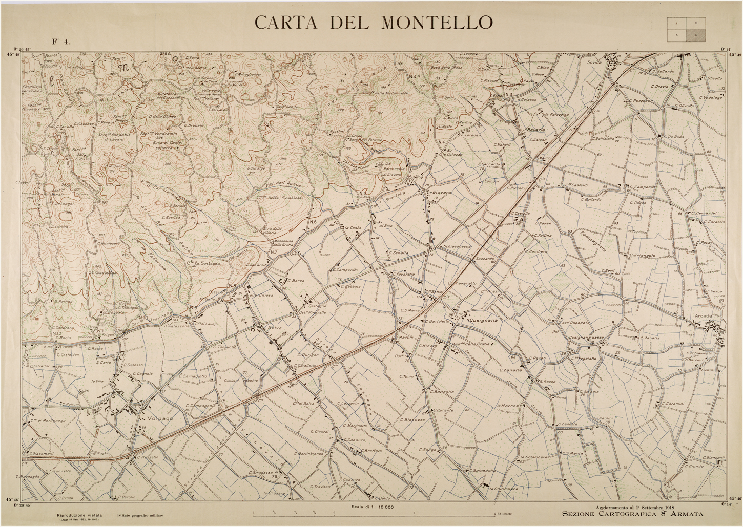 (N:26249) CARTA DEL MONTELLO - FOGLIO 4 (CA009463) Carte e stampe antiche: riproduzione digitale a 150 DPI