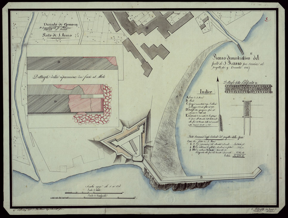 (N:13323) PIANO DIMOSTRATIVO DEL PORTO DI S. REMO PER SERVIRE AL PROGETTO DEI 9 DICEMBRE 1817 - DUCATO DI GENOVA 1 DIPARTIMENTO DI MARINA LITTORALE DI PONENTE PORTO DI S. REMO. (CA002994) Carte e stampe antiche: riproduzione digitale a 150 DPI