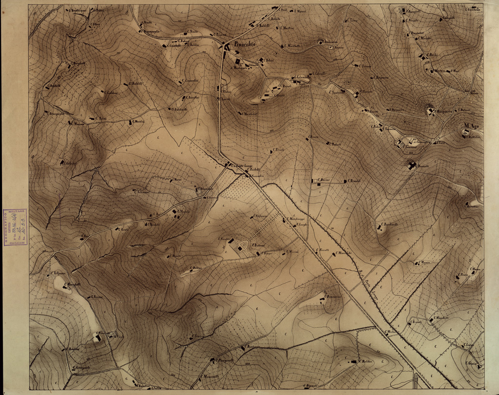 Rappresentazione orografica a curve e sfumo.