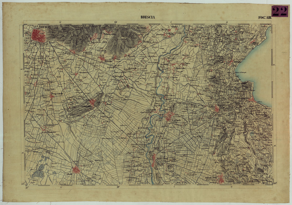 (N:13151) CARTA DELLA PARTE CENTRALE DELL'ALTA ITALIA AUTOGRAFATA NELL'UFFICIO TOPOGRAFICO DEL CORPO REALE DELLOSTATO MAGGIORE TORINO 1859 - FOG.A.III. BRESCIA (CA004855) Carte e stampe antiche: riproduzione digitale a 150 DPI