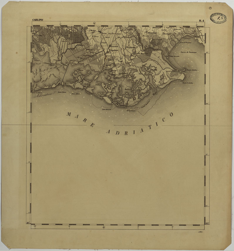 Questa carta un ingrandimento meccanico della carta alla scala 86.400 pubblicata mediante incisione dell' I.R. Istituto Geografico di Vienna. Essa viene riconosciuta sul terreno e messa al corrente per i corsi d'acqua importanti e per le strade rotabili a fondo artificiale e riprodotta in fotolitografia dall' Istituto Topopgrafico Militare Italiano.