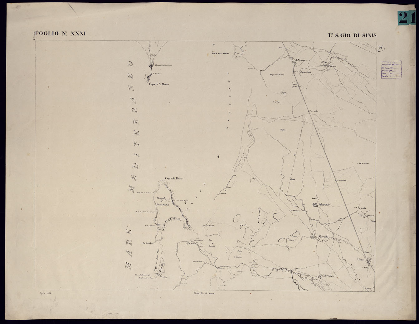 (N:23091) ATLANTE DELL'ISOLA DI SARDEGNA - FOGLIO XXXI TORRE DI SAN GIOVANNI IN SINIS. (CA000729) Carte e stampe antiche: riproduzione digitale a 150 DPI