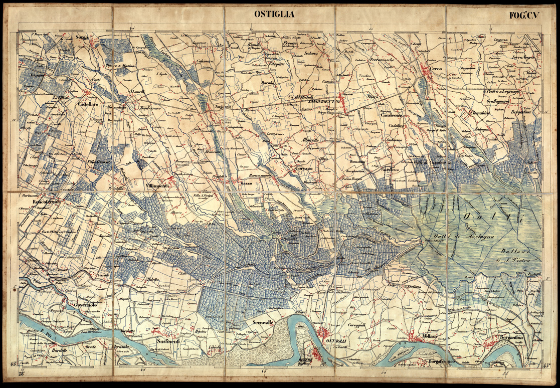 (N:3472) CARTA DELLA PARTE CENTRALE DELL'ALTA ITALIA AUTOGRAFATA NELL'UFFICIO TOPOGRAFICO DEL CORPO REALE DELLO STATO MAGGIORE - Foglio C V OSTIGLIA (B0003356) Carte e stampe antiche: riproduzione digitale a 150 DPI