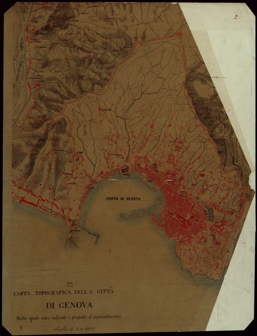 (N:7532) CARTA TOPOGRAFICA DELLA CITTA' DI GENOVA NELLA QUALE SONO INDICATI I PROGETTI D'INGRANDIMENTO SCALA DI 1 A 10.000 (CA002983) Carte e stampe antiche: riproduzione digitale a 150 DPI