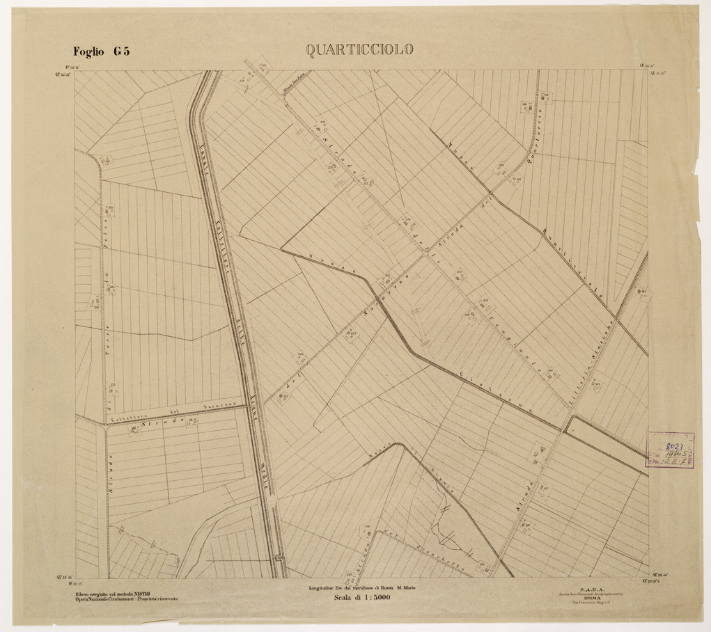 (N:15270) RILIEVO DELLA ZONA DI LITTORIA COL METODO NISTRI - Foglio G5 - Quarticciolo (B0002590) Carte e stampe antiche: riproduzione digitale a 150 DPI