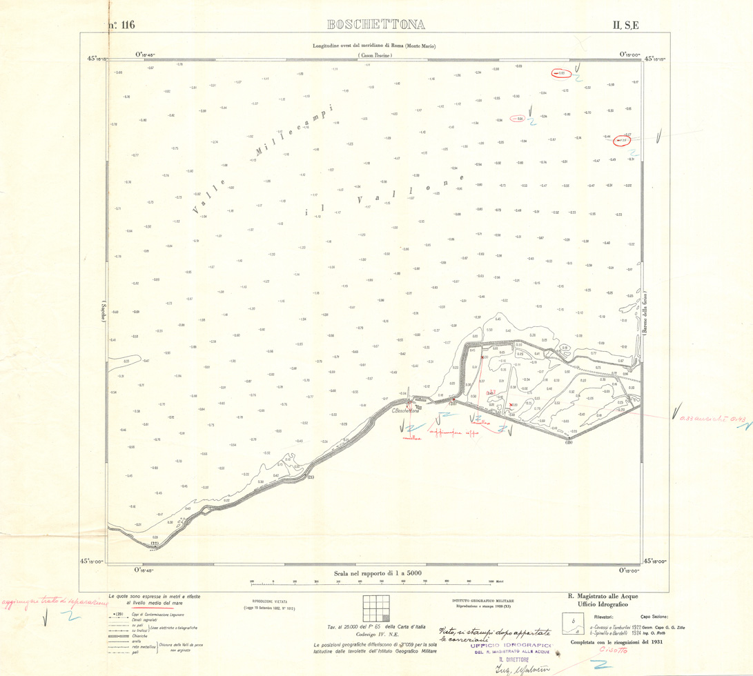 Carta prodotta e stampata dall' IGM negli anni dal 1932 al 1934 su rilievi eseguiti dall' Ufficio Idrografico del Magistrato delle Acque negli anni dal 1921 al 1933