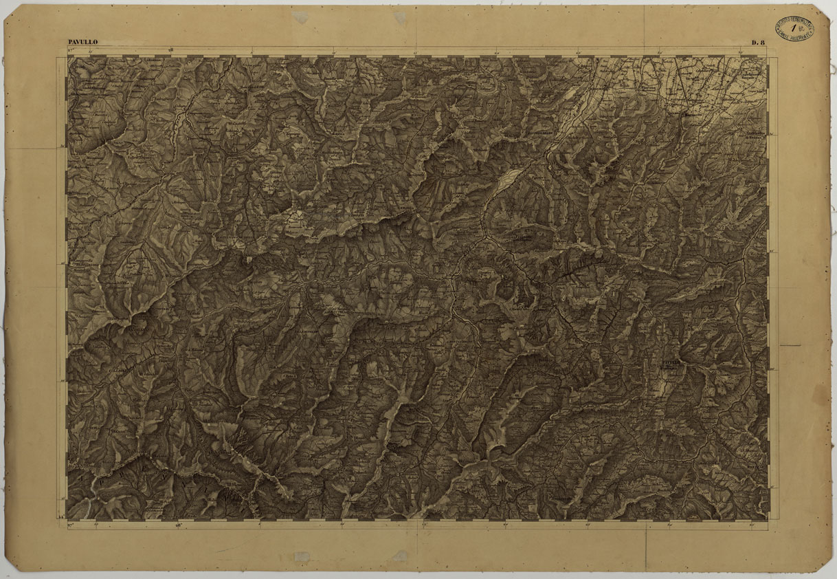 Questa carta un ingrandimento meccanico della carta alla scala 86.400 pubblicata mediante incisione dell' I.R. Istituto Geografico di Vienna. Essa viene riconosciuta sul terreno e messa al corrente per i corsi d'acqua importanti e per le strade rotabili a fondo artificiale e riprodotta in fotolitografia dall' Istituto Topopgrafico Militare Italiano.