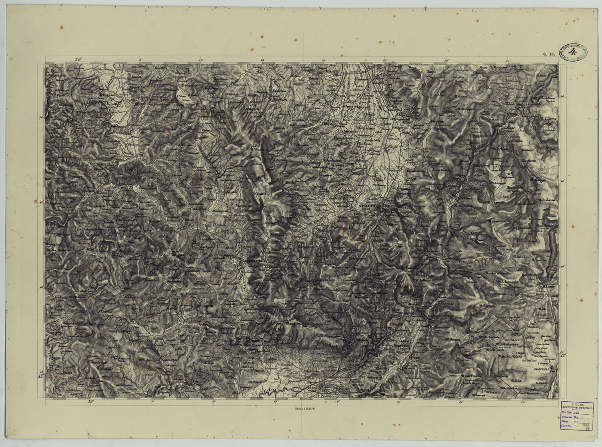 (N:24533) CARTA TOPOGRAFICA DELLO STATO PONTIFICIO E DAL GRAN-DUCATO DI TOSCANA COSTRUTTA SOPRA MISURE ASTRONOMICO TRIGONOMETRICHE CHE ED INCISA SOPRA PIETRA A VIENNA NELL'I.R. ISTITUTO GEOGRAFICO MILITARE PUBBLICATA NELL'ANNO 1851 - FOG. G.13 (CA004530) Carte e stampe antiche: riproduzione digitale a 150 DPI