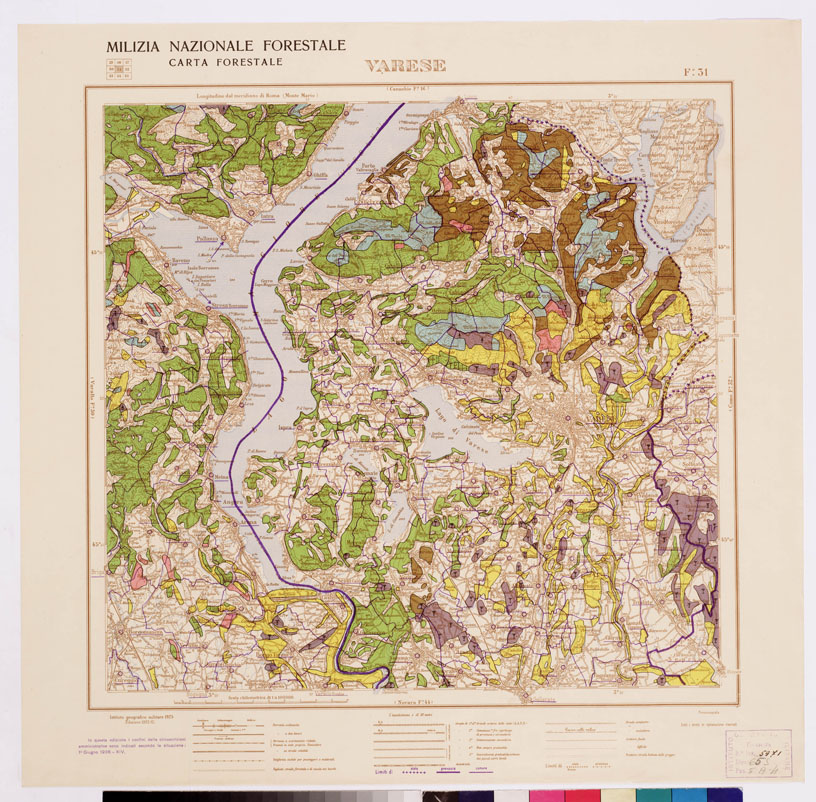 Autore Milizia forestale. Rappresentazione orografica a curve di livello. Tipologia policroma. Editore I.G.M. di Firenze.