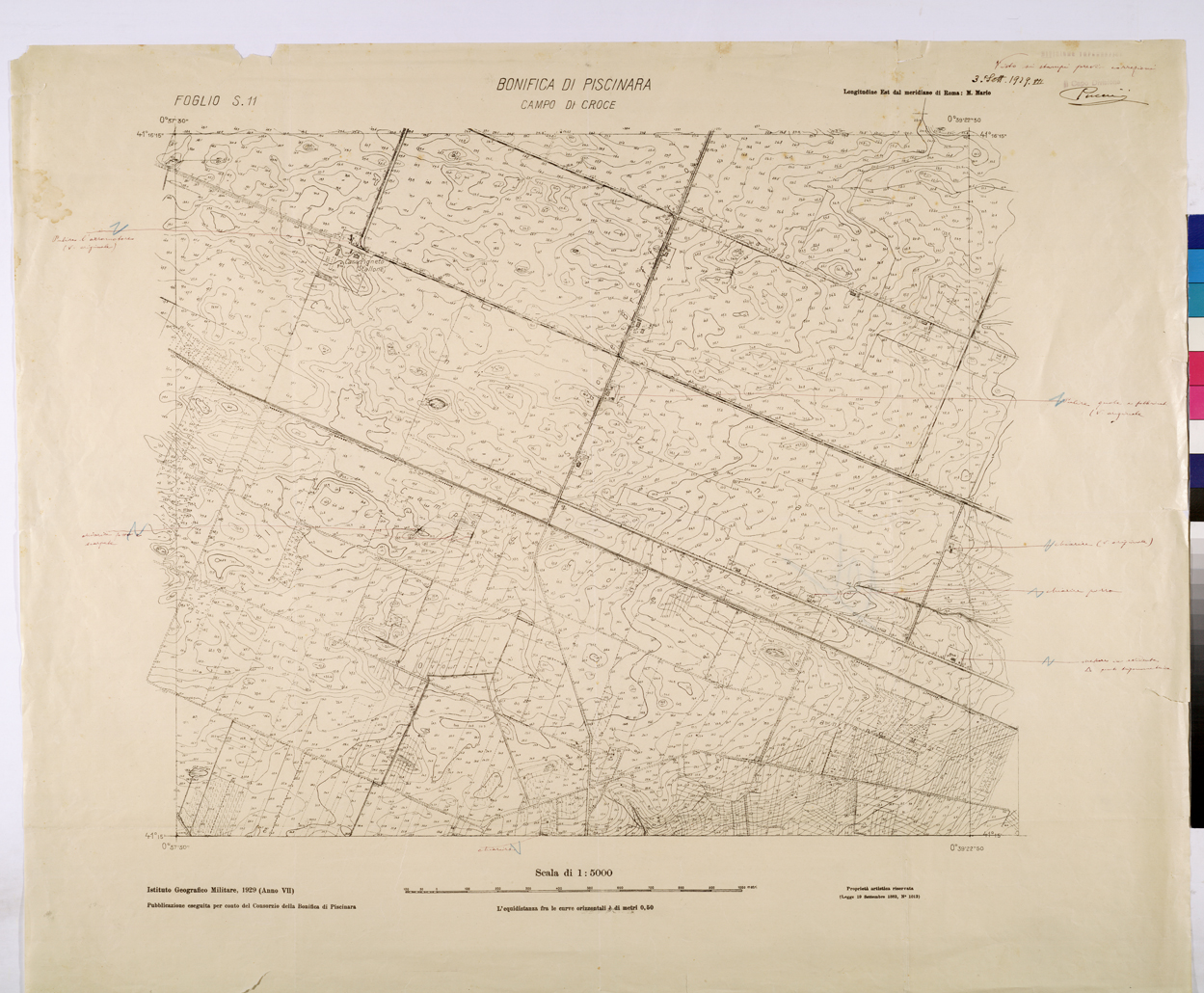 (N:25995) CONSORZI DI BONIFICA DI PISCINARA E BONIFICAZIONE PONTINA - F.S11 CAMPO DI CROCE. (CA009194) Carte e stampe antiche: riproduzione digitale a 150 DPI