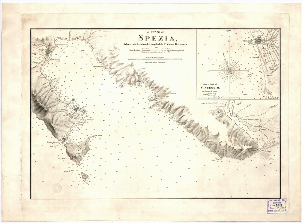 (N:10593) IL GOLFO DI SPEZIA RILEVATA DAL CAPITANO G. H. SMYTH DELLA Rl. MARINA BRITANNICA (B0002723) Carte e stampe antiche: riproduzione digitale a 150 DPI
