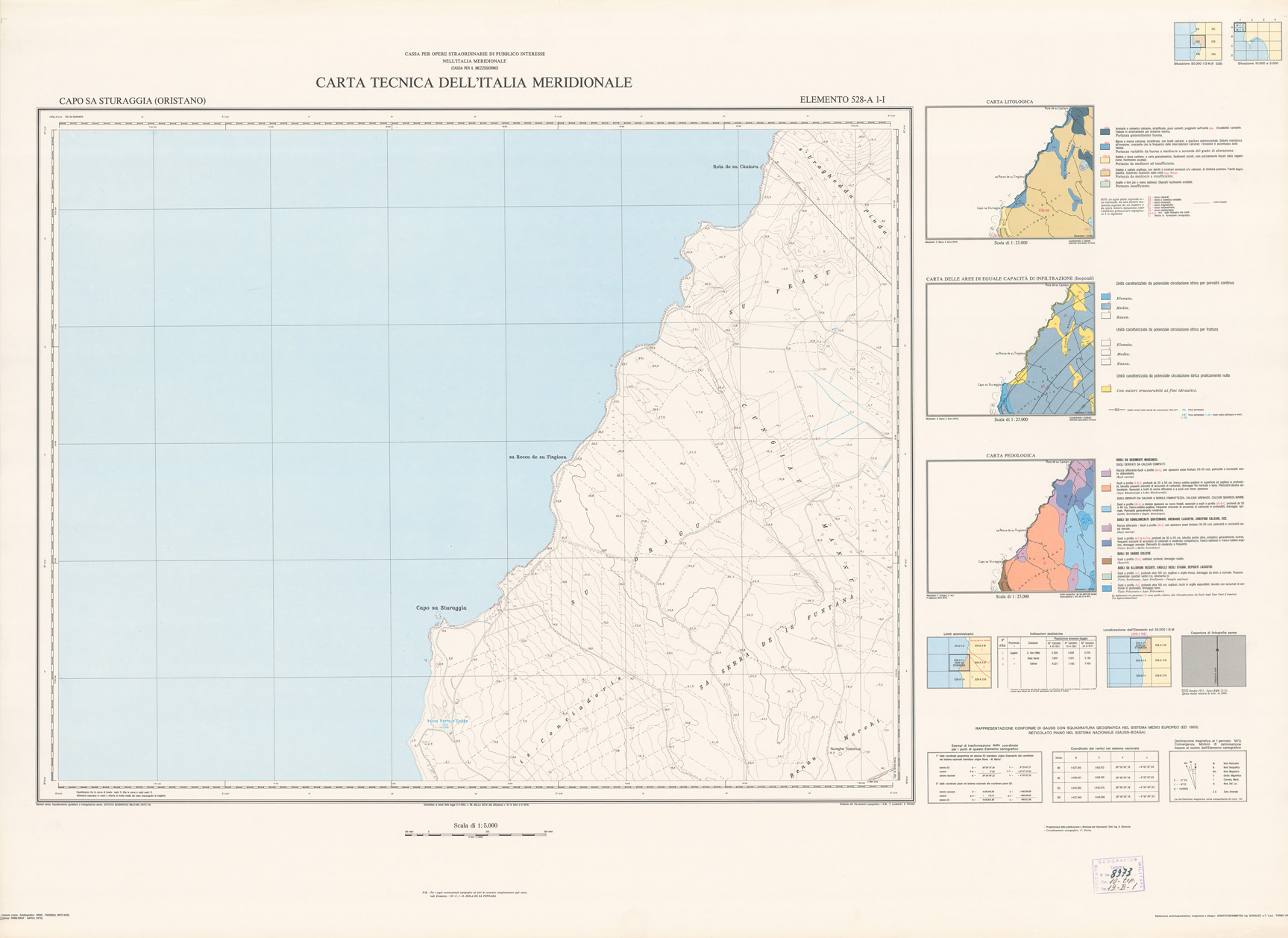 (N:5945) CARTA TECNICA DELL'ITALIA MERIDIONALE - INIZIO DEI RILIEVI SARDEGNA PER CONTO DELLA CASSA PER IL MEZZOGIORNO - Elemento 528-A1-I - Capo Sa Sturaggia (Oristano) (B0004984) Carte e stampe antiche: riproduzione digitale a 150 DPI