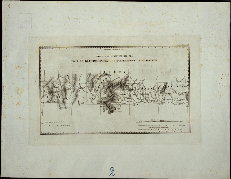 (N:24475) LIGNES DES SIGNAUX DE FEU POUR LA DETERMINATION DES DIFFERENCES DE LONGITUDE - FOGLIO 2 (CA003977) Carte e stampe antiche: riproduzione digitale a 150 DPI