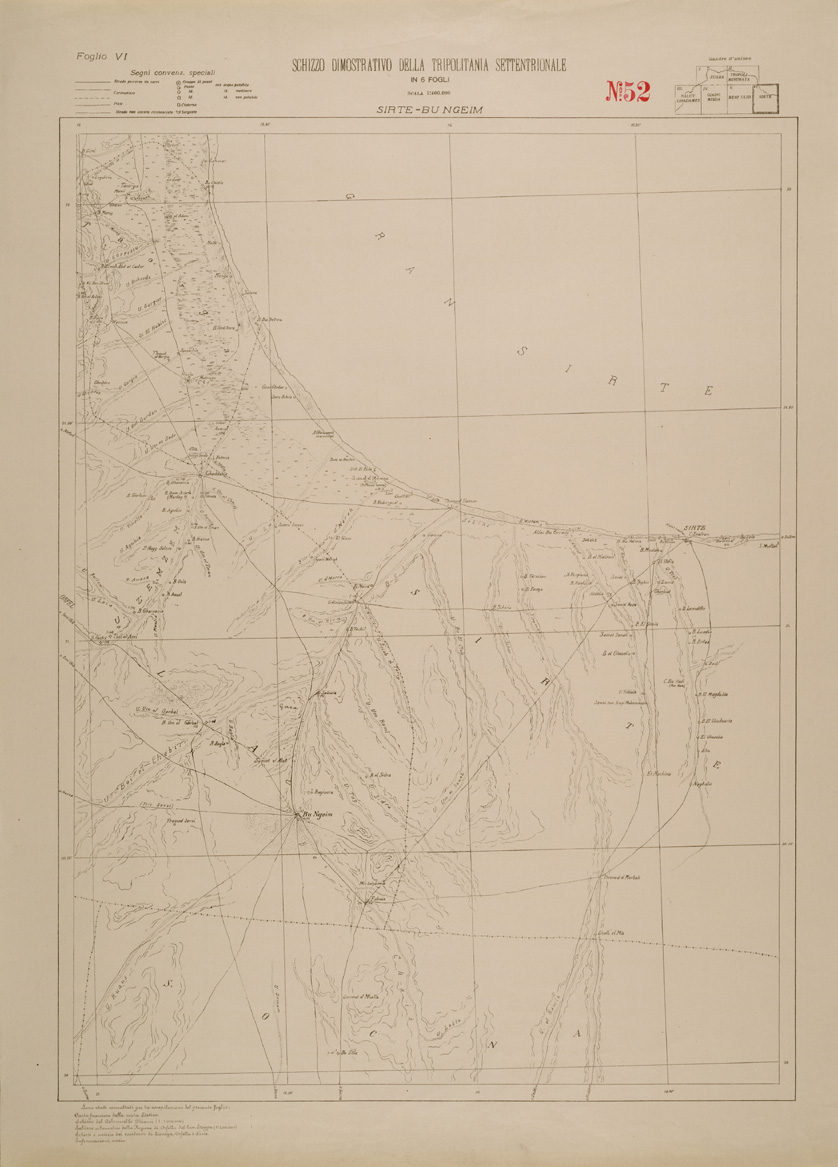 (N:30370) SCHIZZO DIMOSTRATIVO DELLA TRIPOLITANIA SETTENTRIONALE - SIRTE-BU NGEIM - FOGLIO VI. (SE004400) Carte e stampe antiche: riproduzione digitale a 150 DPI