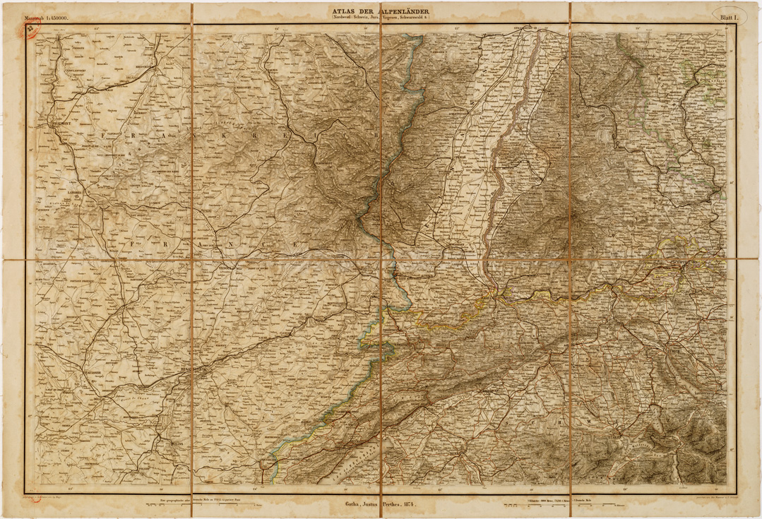 (N:12642) MAYR'S ATLAS DER ALPEN LANDER UND MITTEL ITALIEN - Tavola I (B0007529) Carte e stampe antiche: riproduzione digitale a 150 DPI