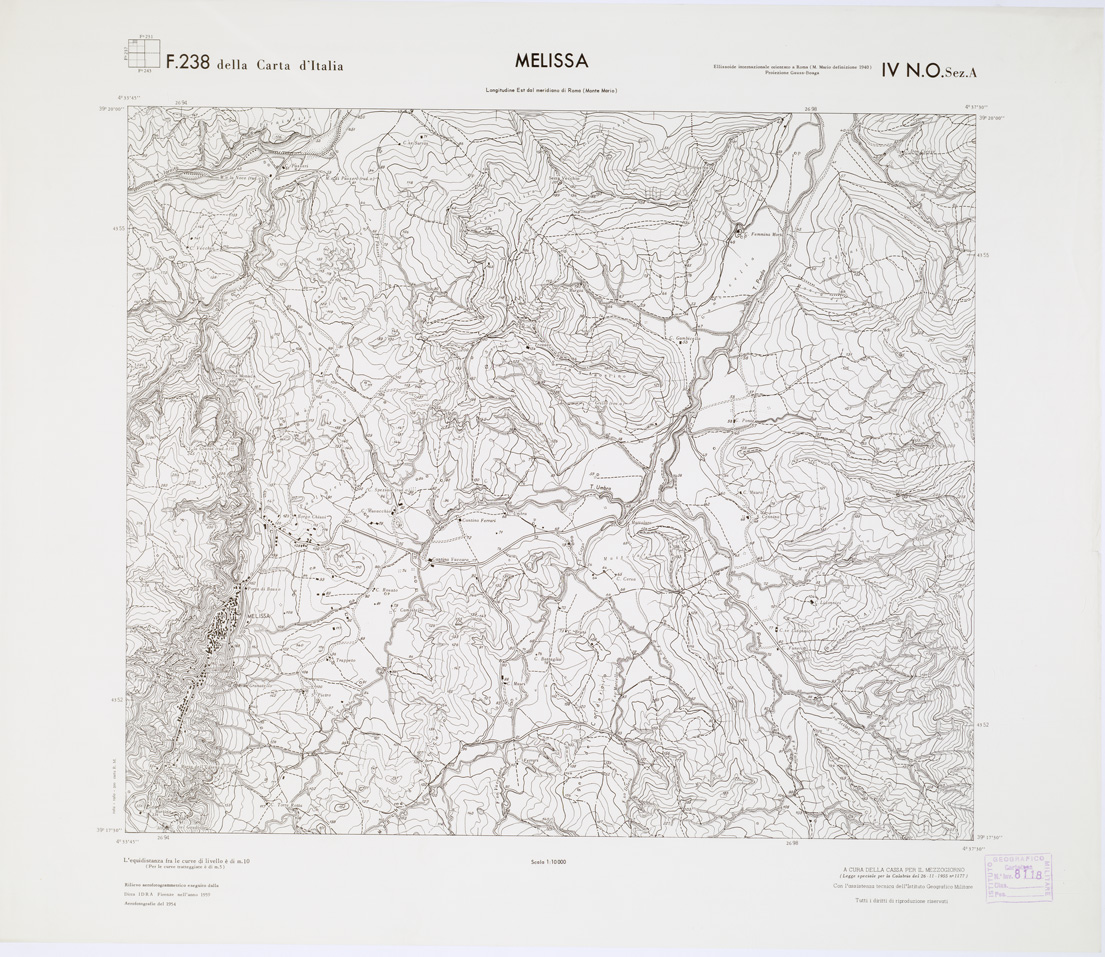 (N:7181) CARTA TOPOGRAFICA DELLA CALABRIA - Foglio 238 IV N.O. SEZ.A - Melissa (B0001534) Carte e stampe antiche: riproduzione digitale a 300 DPI