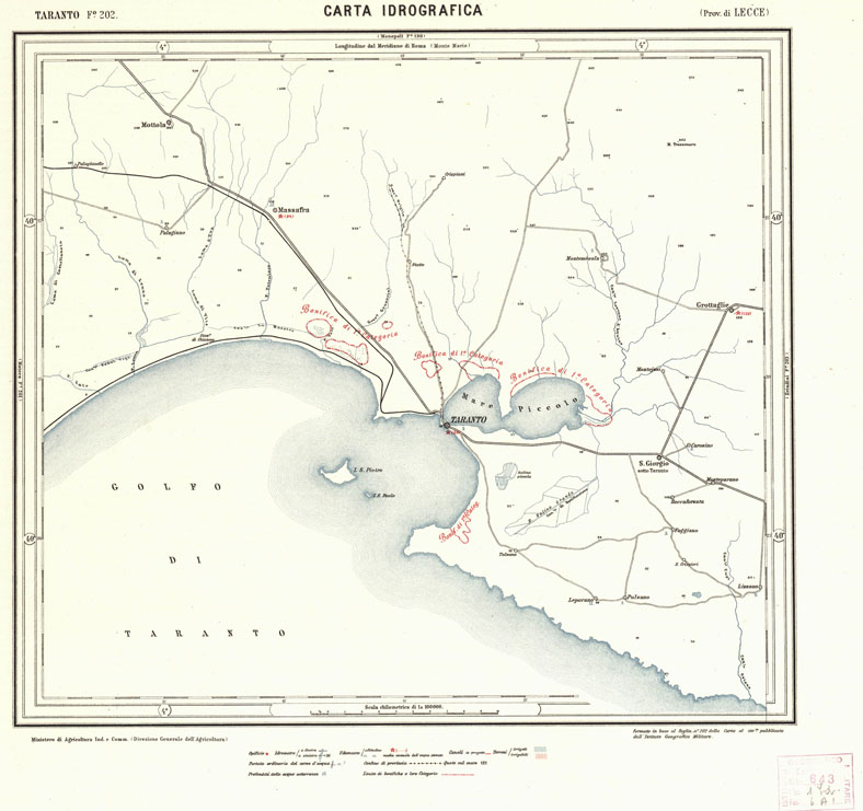 (N:946) CARTA IDROGRAFICA DEL REGNO D'ITALIA - Foglio 202 - Taranto (B0013456) Carte e stampe antiche: riproduzione digitale a 300 DPI