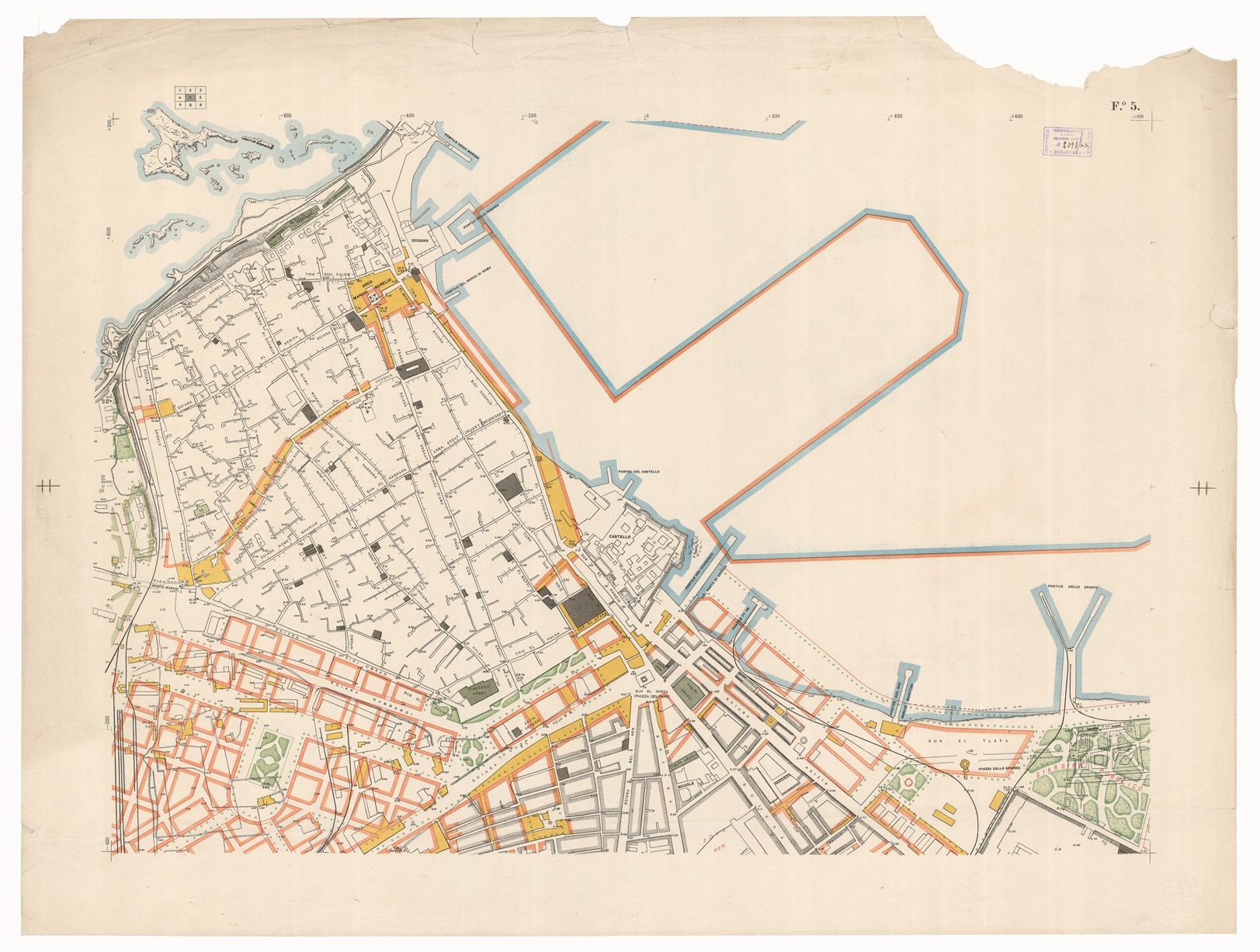 (N:13348) PIANO REGOLATORE DEFINITIVO DELLA CITTA' DI TRIPOLI - Foglio 5 (B0011371) Carte e stampe antiche: riproduzione digitale a 300 DPI
