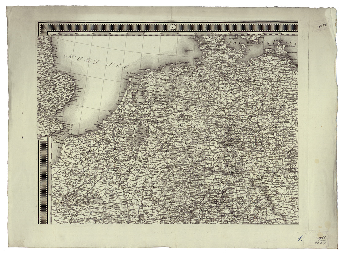 (N:34395) NEUESTE GENERAL UND POST-KARTE VON GANZ DEUTSCHLAND UND ITALIEN MIT INBEGRIFF ALLER ETC... - FOGLIO 1 (B0020293) Carte e stampe antiche: riproduzione digitale a 300 DPI