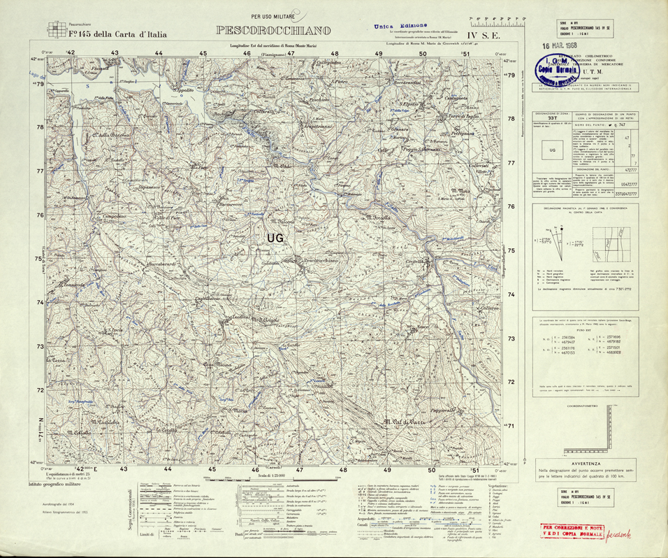 145 IV-SE (PESCOROCCHIANO) Anno:1955 Serie 25V: ultima edizione