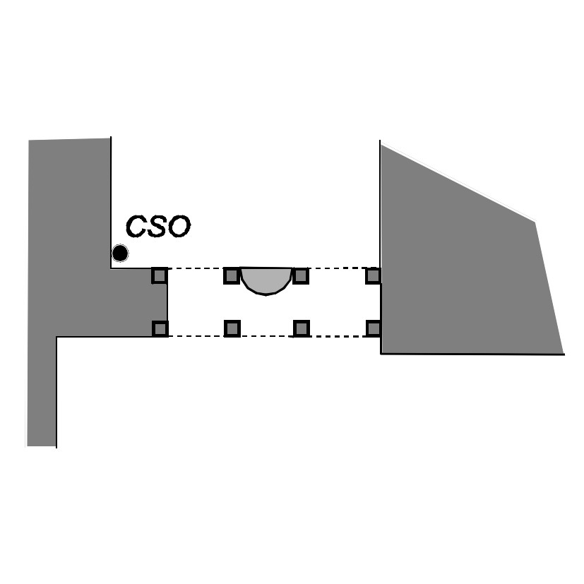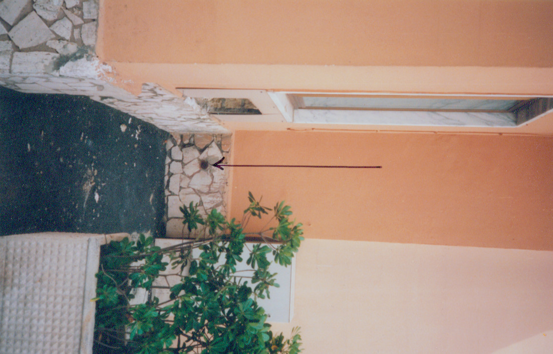 (CSO) Bullone infisso nello zoccolo della palazzina all'interno del cancello, a destra della finestra.