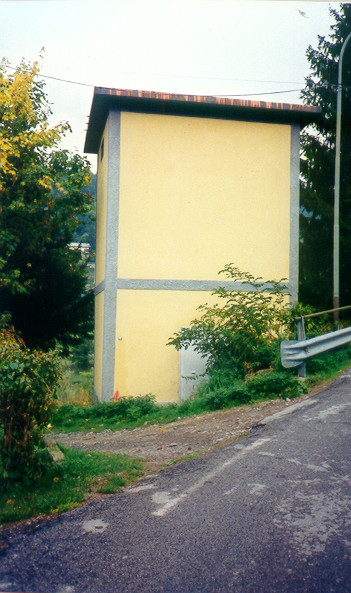 (CSO)-Bullone fissato sullo spigolo della facciata fronte strada della cabina ENEL a Santo Stèfano D' Áveto