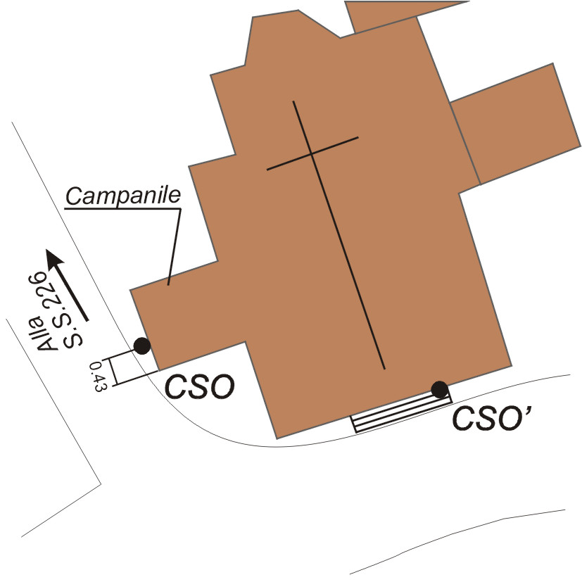 (CSO) Bullone fissato a m. 0,43 dallo spigolo destro del campanile