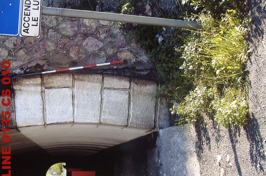 (CSO) Bullone in ghisa infisso a m 0.85 dallo spigolo destro della spalla destra d'ingresso alla galleria in direzione Càrcare