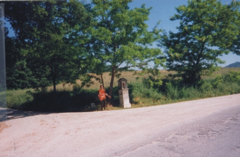 (CSO) Bullone infisso alla base del tabernacolo ubicato al lato della ex S.S. Flaminia sullo svincolo per Lancialunga.