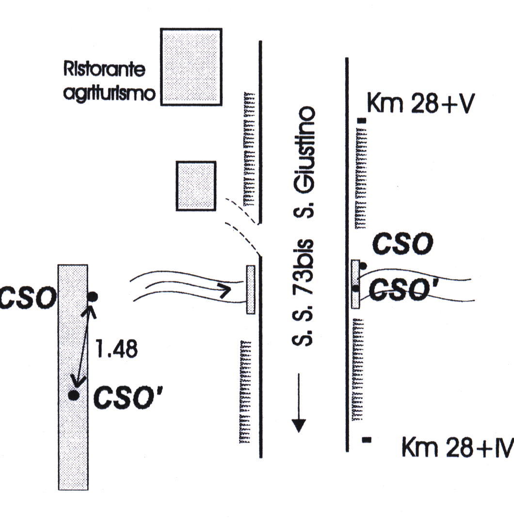 (CSO') Disco impiombato presente in mezzeria alla spalletta del ponticello, lato valle, ubicato al km 28+450 della S.S. 73 bis.