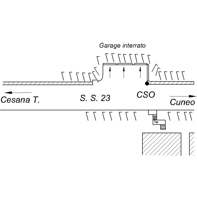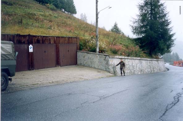(CSO) Bullone a muro infisso nello spigolo destro del muro rivestito in pietrame dello spiazzo antistante ai garage