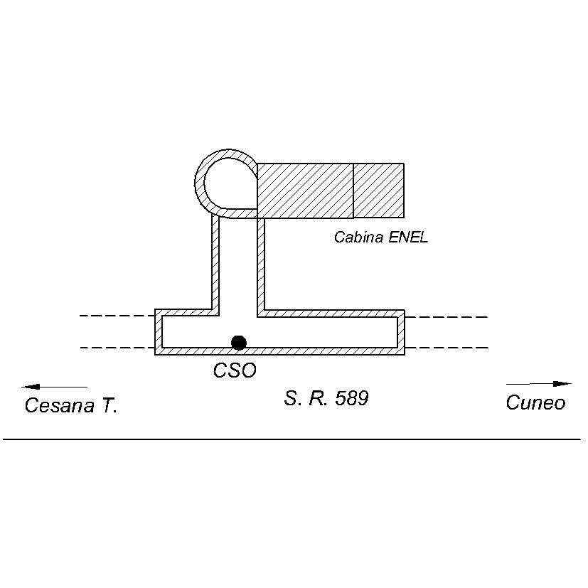 (CSO) Bullone a muro infisso all'interno del canale sul lato adiacente alla S.R. e perpendicolare al pozzo, nelle immediate vicinanze di una cabina ENEL