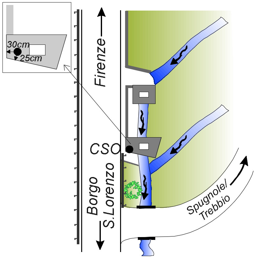 (CSO) Centrino universale infisso sullo spigolo della piastra in c.a. a copertura del tombino posto al bivio per Spugnole/Trebbio, lungo il nuovo tracciato della S.S.65 tra Tagliaferro e Campomigliaio.