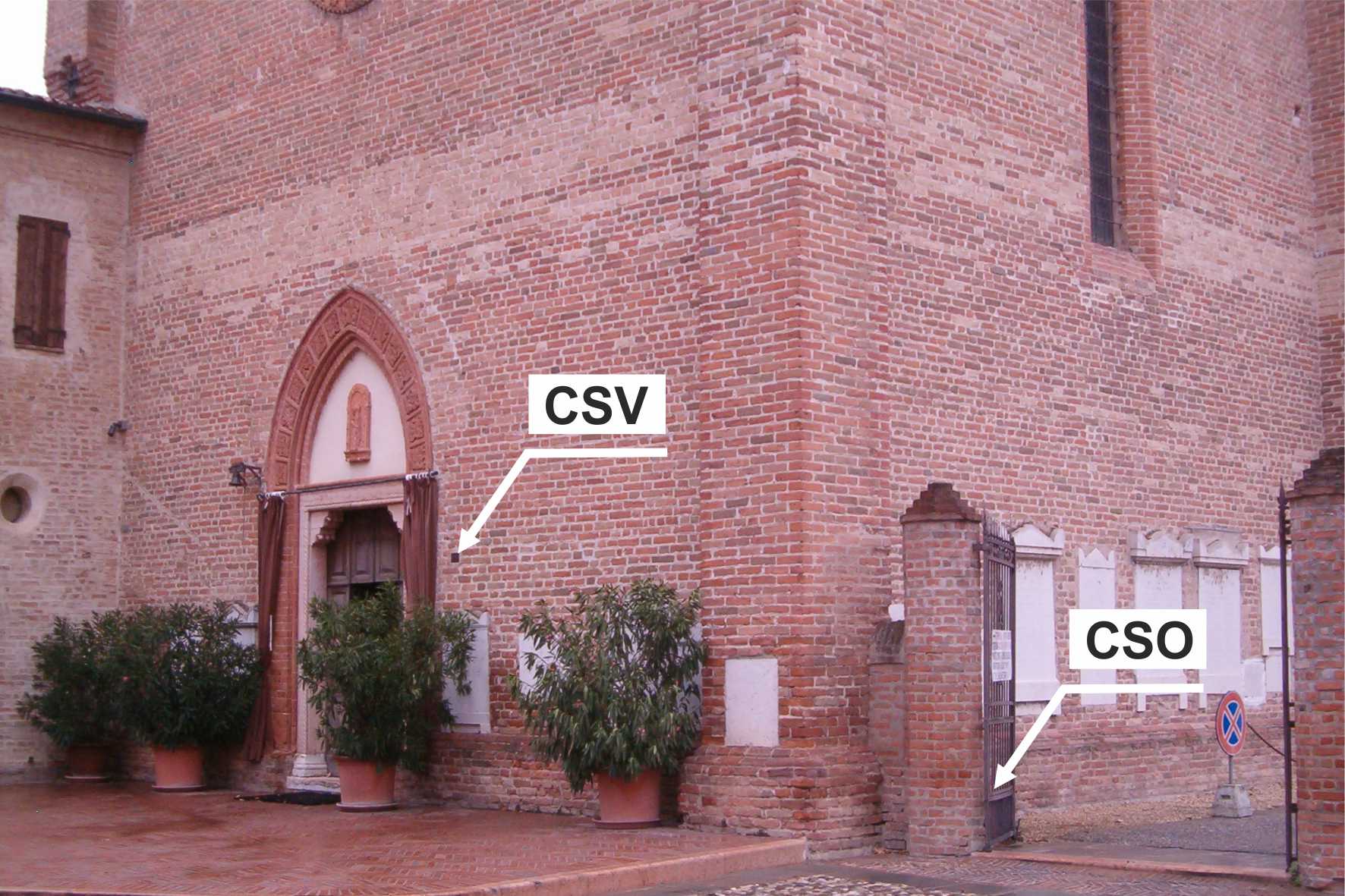(CSV) - Piastrina antica infissa sulla facciata a destra della porta d'ingresso.