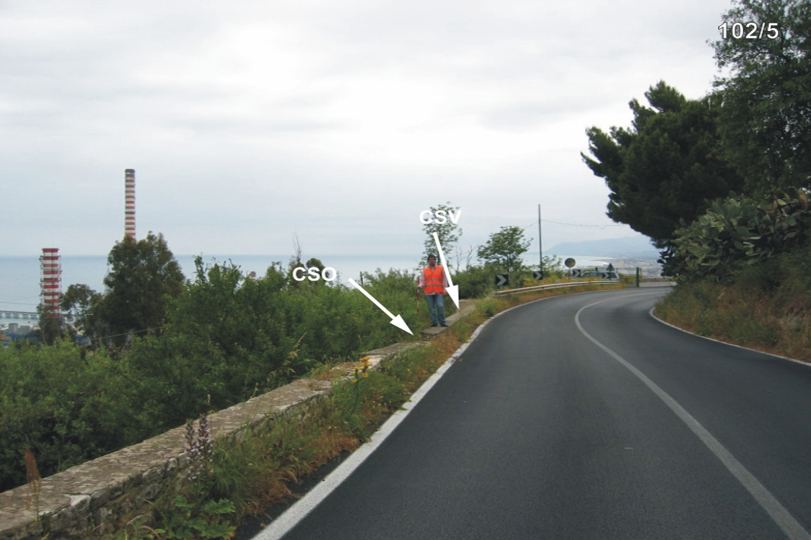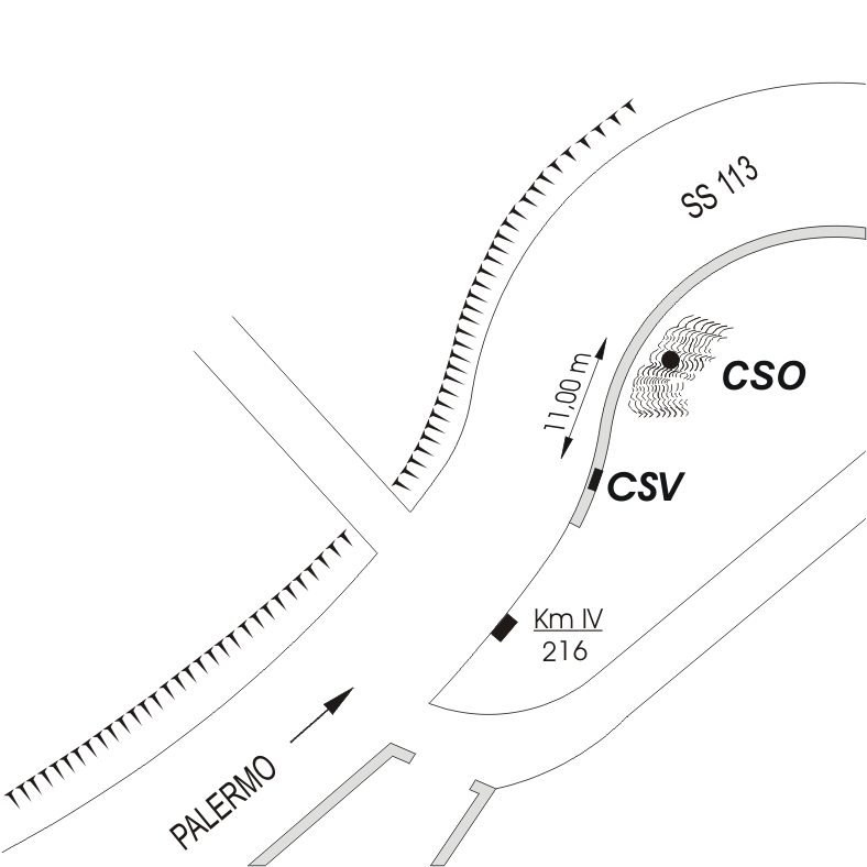 (CSO) - Chiusino in ghisa III categoria ubicato sul ripiano del macigno attaccato esternamente al muro di sostegno, a destra della SS 113 in direzione Palermo.