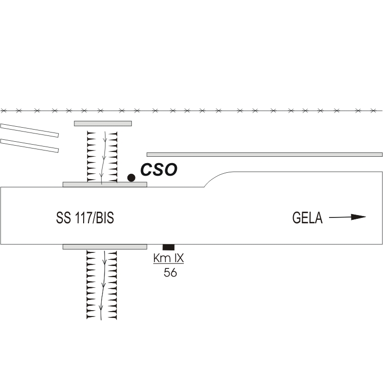 (CSO) - Bullone infisso nella spalletta del ponticello a 2.50 mt. dall'inizio della stessa, a sinistra della strada in direzione Gela.