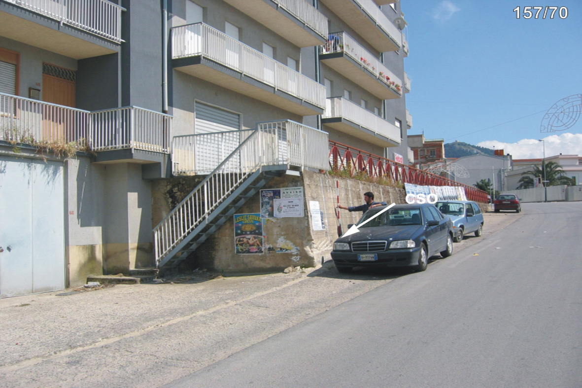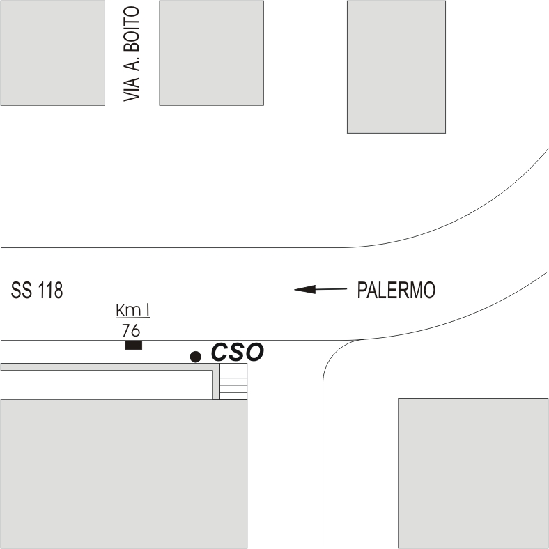 (CSO) - Bullone infisso nel muro di sostegno , a 1.50 mt. dallo spigolo sinistro, in prossimità della pietra ettometrica 76.100, a sinistra della SS 118 in direzione Palermo.