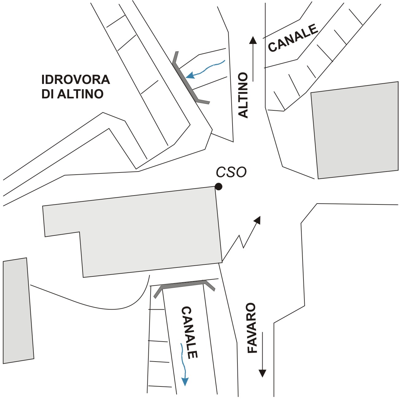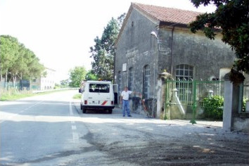 (CSO) - Alla base della facciata, presso lo spigolo di destra. Il cso è protetto da un tubo coperto da un chiusino a livello del suolo.