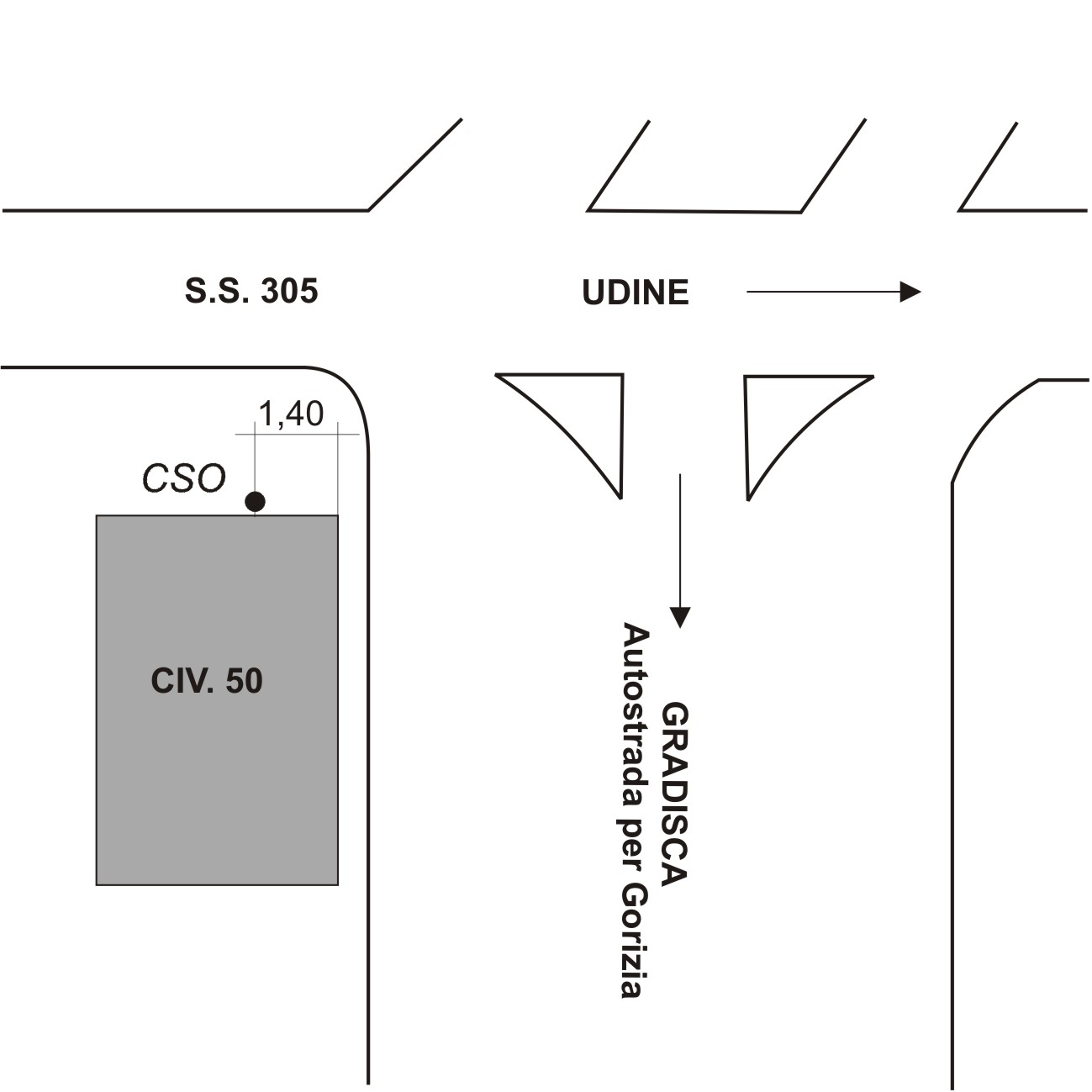 (CSO) - Alla base della facciata verso la S.S. 305 , a mt. 1,40 dallo spigolo di sinistra .