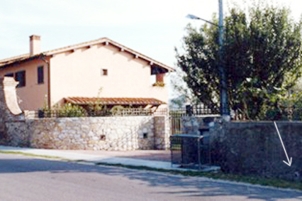 (CSO) - Bullone infisso nel muro in pietra di cinta adiacente la proprietà al civ.3 del Prof. Dott. G. Cardini.