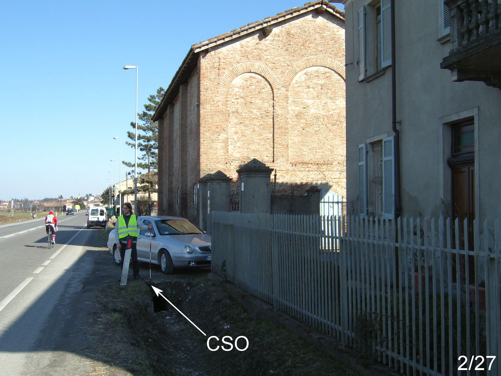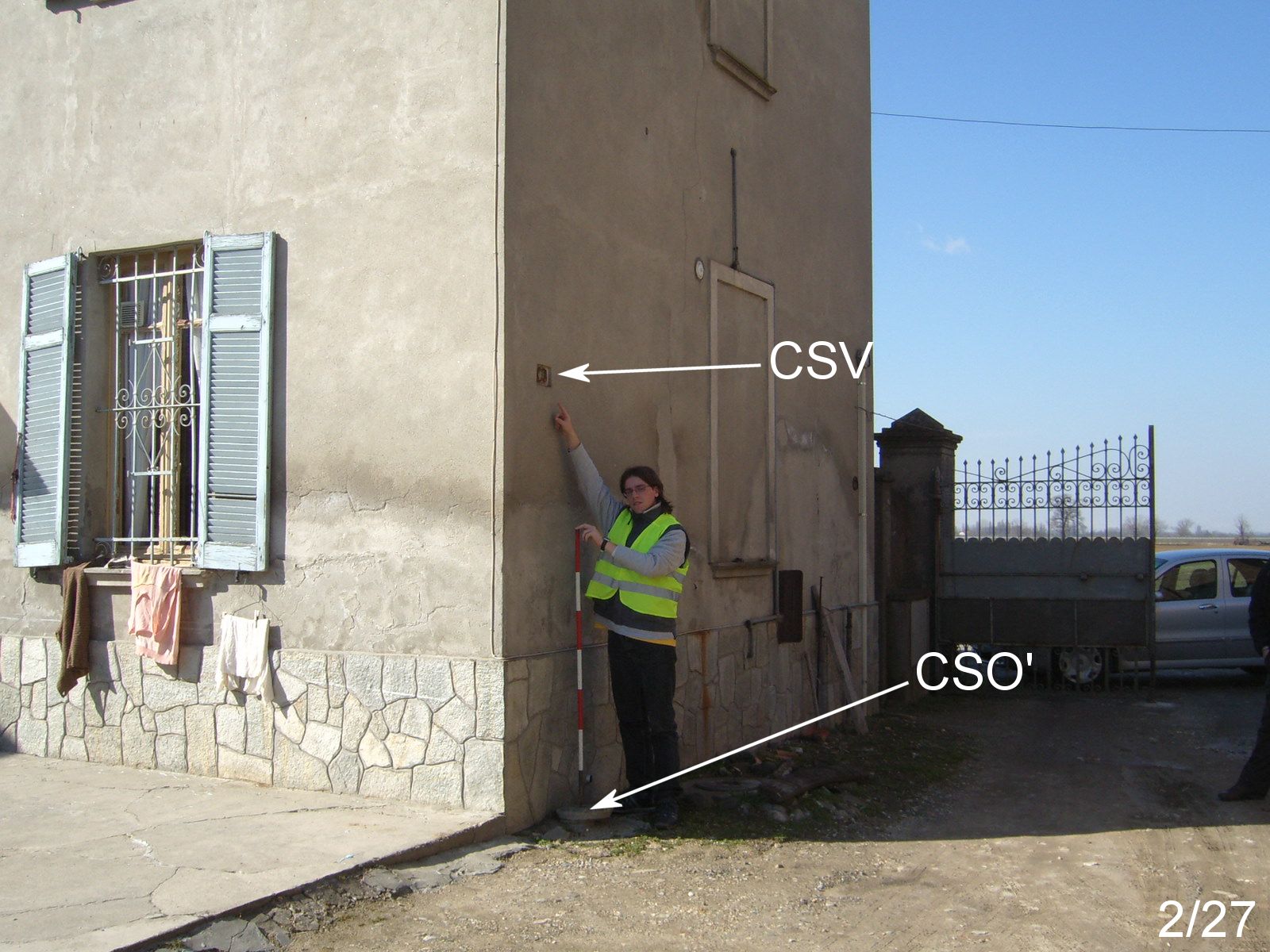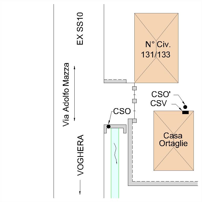 (CSO') - Pozzetto rialzato con PVC e coperchio in ghisa, posto presso lo spigolo di sinistra della facciata della casa Ortaglie, verso l'ingresso carraio.