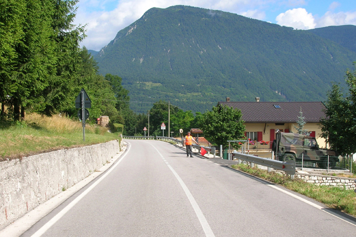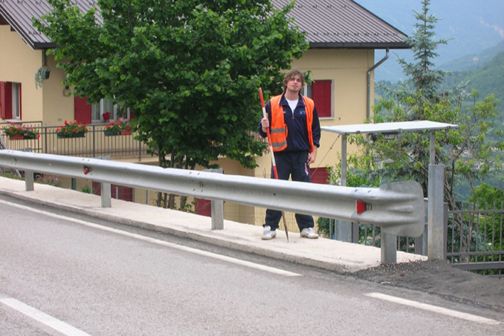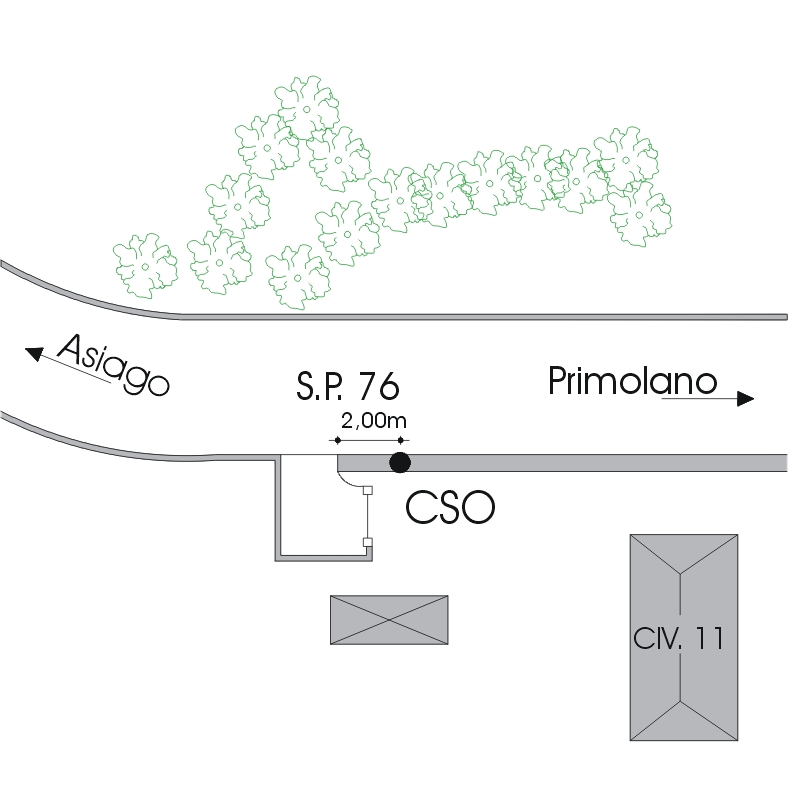 (CSO) -Bullone infisso alla sommità del muro a retta in cemento armato di valle, prossimo alla testa rivolta verso Enego, posto all'altezza del km 32,100.
