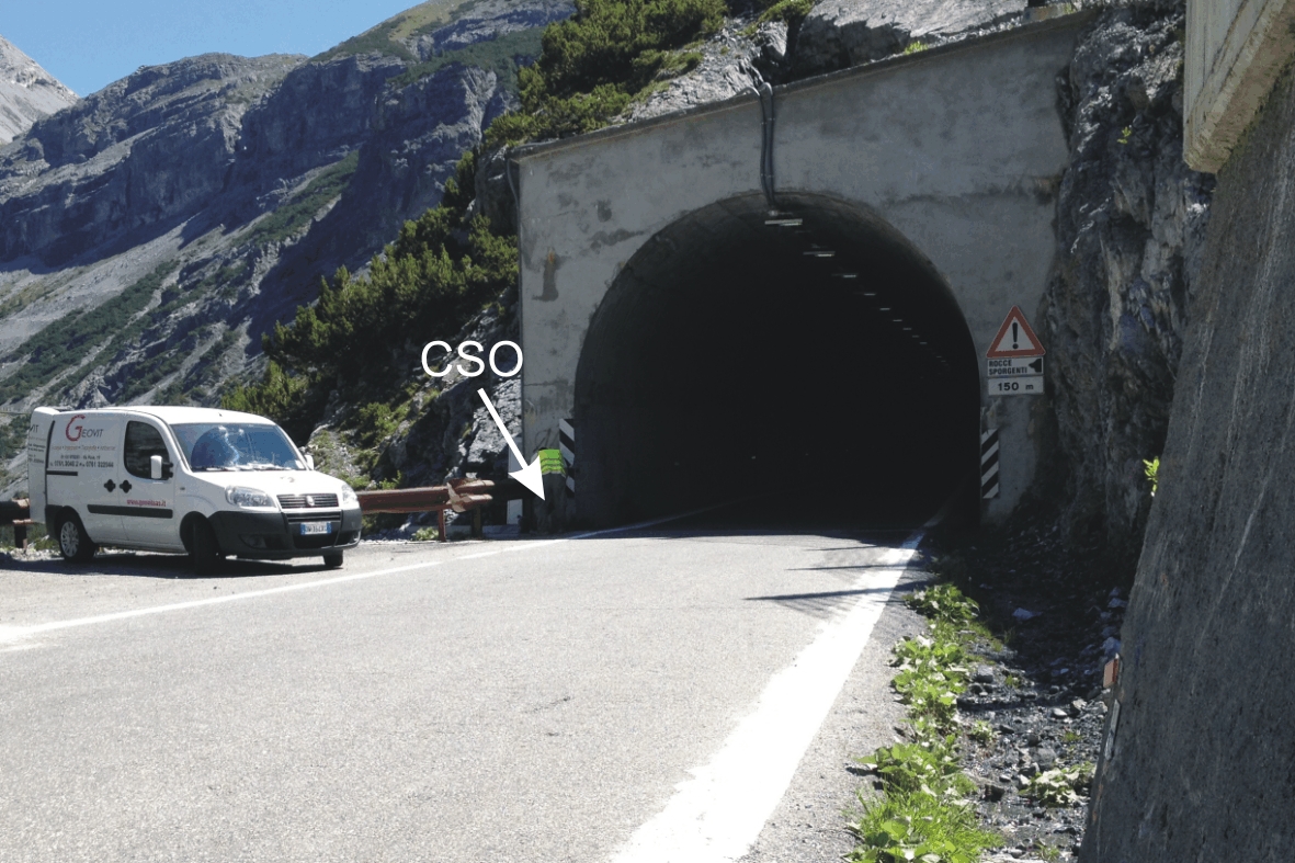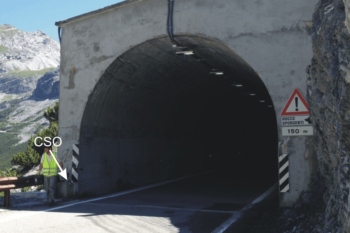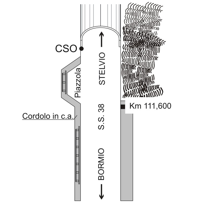(CSO) - Bullone infisso alla base sinistra dell'ingresso della galleria "Rastello", direzione Stelvio.