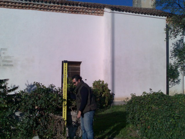 (CSO') - Pozzetto interrato protetto da tubo in plastica e coperchio in ghisa IGM sito alla base dello spigolo destro del muro di cinta, antistante il fronte laterale destro della chiesa.