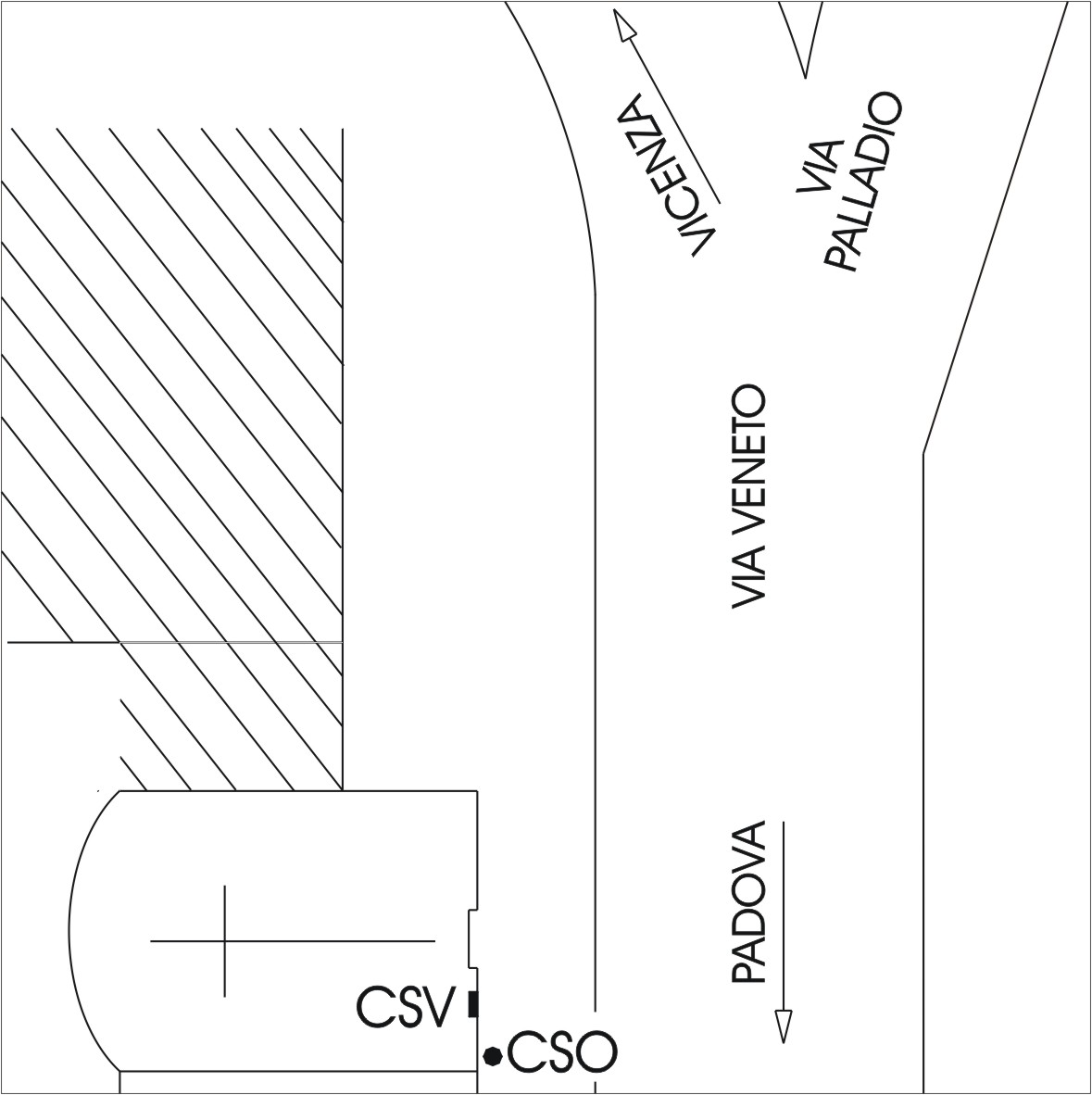 (CSO) - III Categoria - Chiusino in ghisa IGM sito alla base della facciata principale, a sinistra della porta d'ingresso, ed in prossimità dello spigolo sinistro del corpo di fabbrica centrale.