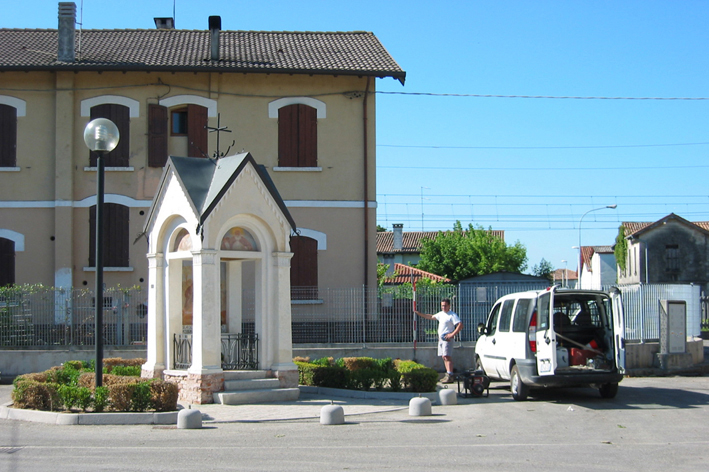 (CSV) - Piastrina di altro ente R.Veneto infissa sulla facciata sinistra (spigolo sinistro) della cappelletta antistante la trattoria "al Cacciatore" e prossima alla stazione ferroviaria.