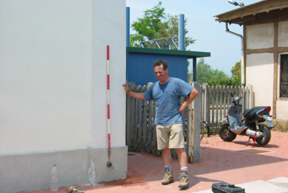 (CSV') - Targa con linea incisa , riportante quota 80.02 slm , sita a destra della porta centrale.