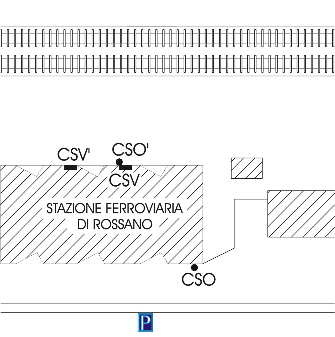 (CSO) - Bullone IGM infisso in prossimità dello spigolo destro, lato strada, della stazione di Rossano.