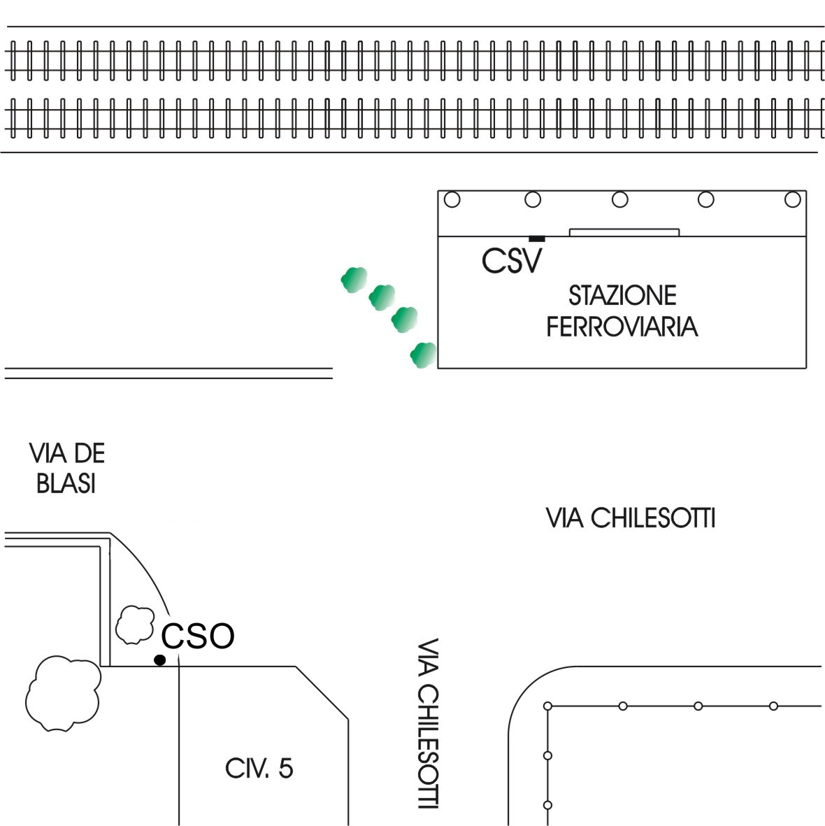 (CSV) - Piastrina antica IGM infissa sulla facciata, lato binari, a sinistra della IV porta da destra.